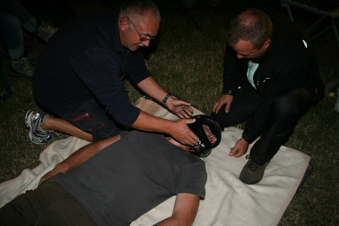 Ab 10 Uhr wurde die Winde kräftig genutzt und die Wettersituation war durchaus akzeptabel. Ferner war Willi Horka mit seinem Giro da, um wilde Rundflüge durchzuführen. Um 13 Uhr haben wir den Grill angeschmissen und kräftig zugelangt. Ab 14 Uhr wurde mit unserem Flugwettbewerb mit Zielwerfen während des Landeanflugs begonnen. Nachdem der fliegende Teil absolviert war, wurde der zweite Teampartner, unter kräftigen Gejohle der vielen Zuschauer mit einem Speedflyer durch einen Parcours gejagt. Die Auswertung der Gewinner gestaltete sich für Marion etwas schwierig, da Knut und ich alle 30 Minuten neue Regeländerungen einführten, was ebenfalls von den Zuschauern mit Gejohle quittiert wurde. Wir hatten alle unseren Spaß! Das Wetter verschlechterte sich ab 15:30 Uhr zunehmens, sodass wir fünf Teams nicht in die Luft lassen konnten. Das Alternativprogramm wurde sofort aktiviert und wir haben uns mit 30 Piloten zu einem Erste-Hilfe-Kurs für Gleitschirmpiloten in ein eigens dafür aufgestelltes Zelt zusammengefunden. Benny, unser Professor für Erste Hilfe, hat uns dann eine Stunde gut in die Problematik der Versorung von verletzten Gleitschirmpiloten eingeführt. Großen Dank an Benny! Anschließend haben wir die Gewinner (alle 20 Piloten die mitgemacht haben) mit super Preisen von Aircross, Nova und Skywalk ausgestattet. Vielen Dank an dieser Stelle an die Hersteller für die gesponsorten hochwertigen Preise!  Ab 18 Uhr wurde bis 20 Uhr wieder gegrillt und bis 0 Uhr am Feuer von Christophs Brennschale getrunken und erzählt. Am nächsten Morgen hatten Ano und Knut Brötchen und Aufschnitt für ein großes Frühstück mitgebracht, das alle Camper gerne angenommen haben. Alles in Allem war es ein schönes Fest mit ca. 90 Personen aus der LSG und dem HDGV. Großen Dank noch mal an Knut, Ano und dem Team der Harzer Gleitschirmschule, ohne die wäre dieses Fest unmöglich gewesen.